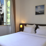 The apartment also has a kitchen area, a bathroom and separate toilet. Whether for business or leisure, a two-room apartment for two, three or four people is an excellent compromise, with a living room featuring a sofa bed, and a separate bedroom with a traditional bed.